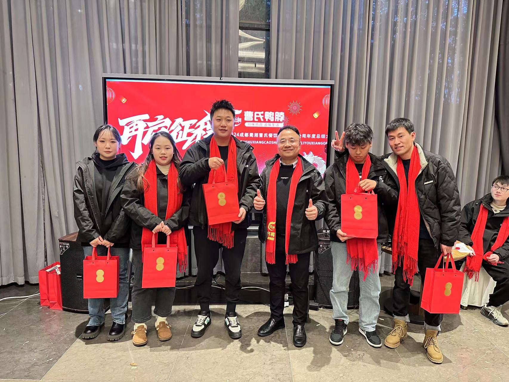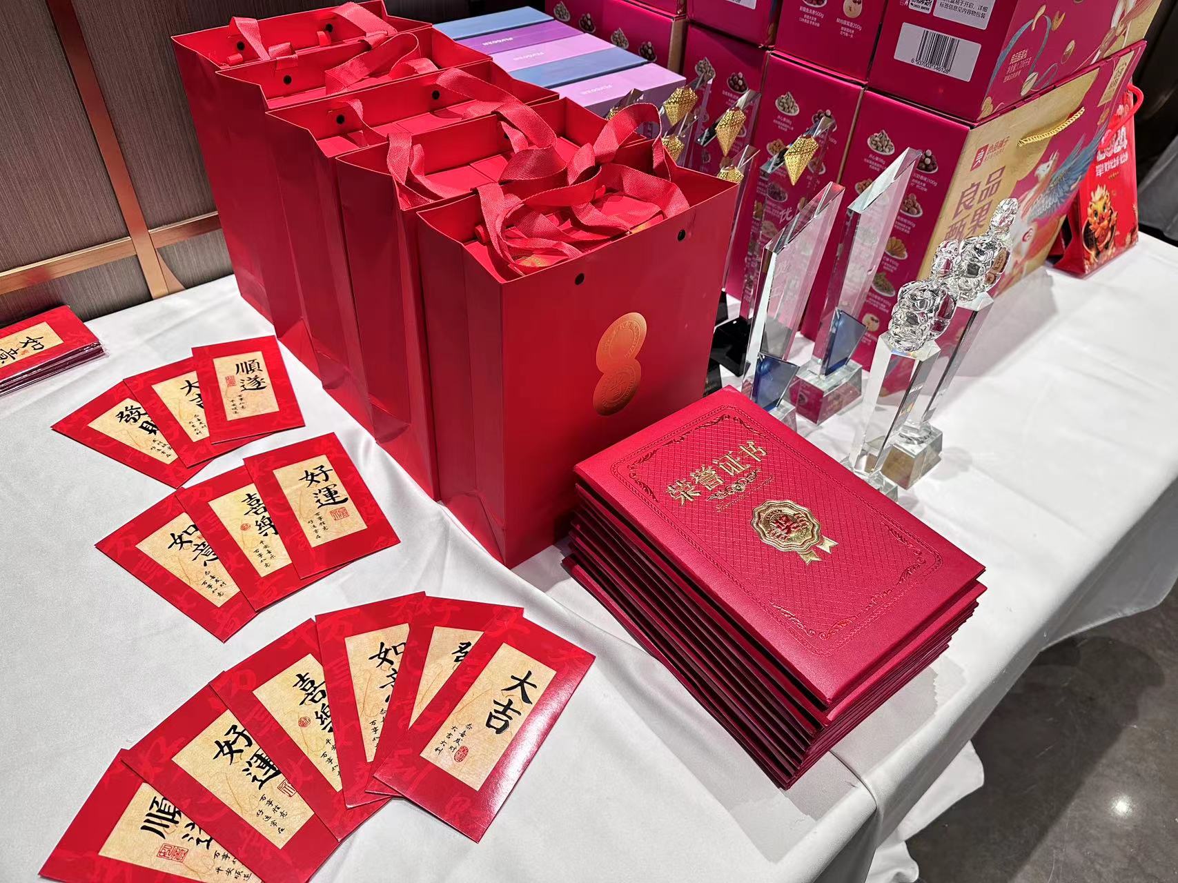 活動(dòng)流程緊湊而有序。我們?cè)O(shè)置了進(jìn)門(mén)處簽到,并為大家準(zhǔn)備了抽獎(jiǎng)球、定制圍巾、水杯、彩票等小禮品,讓大家感受到公司滿(mǎn)滿(mǎn)的關(guān)懷。此外,我們還在KT背景墻前拍照留念,記錄下這一特殊時(shí)刻。隨后,蜀湘曹氏鴨脖創(chuàng)始人張禮華張總為大家致辭,隨后進(jìn)行了一系列頒獎(jiǎng)環(huán)節(jié),包括優(yōu)秀員工獎(jiǎng)、年度優(yōu)秀團(tuán)隊(duì)獎(jiǎng)、年度優(yōu)秀供應(yīng)商獎(jiǎng)等,每個(gè)獎(jiǎng)項(xiàng)都代表著我們的成長(zhǎng)與進(jìn)步。每一位獲獎(jiǎng)?wù)叨及l(fā)表了感言,分享了他們的喜悅與成長(zhǎng)。
